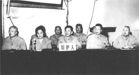 出庭的辩护律师前排自左至右是甘雨霈、韩学章、张思之、马克昌、周奎正,后排自左至右是傅志人、张中、苏惠渔、周亨元。王舜华律师因病未能出庭。