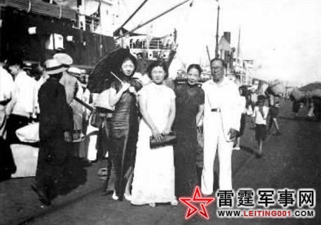在青岛监视汪精卫、孙科时留影。当年戴笠亲自执笔,写下三份兰谱,名影星许莺莺(左三)、戴笠、陈华(左二)结为兄妹