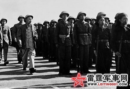 胡志明在河内的Bach Mai 军用机场检阅Hoang Ngan 游击队,Hoang Ngan 游击队因打通由法军重兵保护的5号国道(一条连接河内与大型港口城市海防的重要公路)而名声大噪,而Bach Mai 军用机场也是越战十年中美军轰炸机的“重点照顾对象”。(1955)